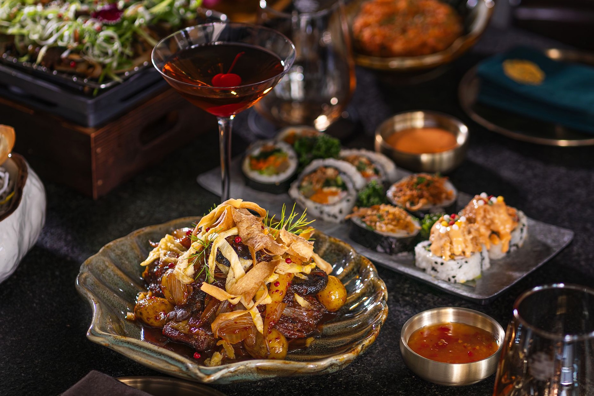 - Signature cocktails and soju pairings designed to enhance every bite